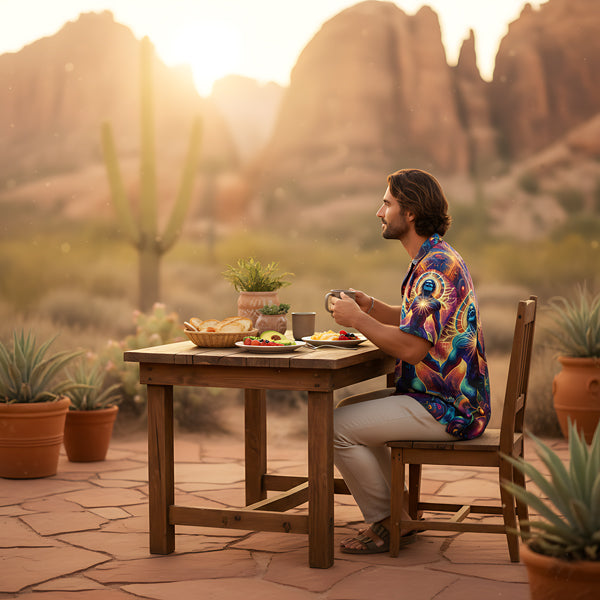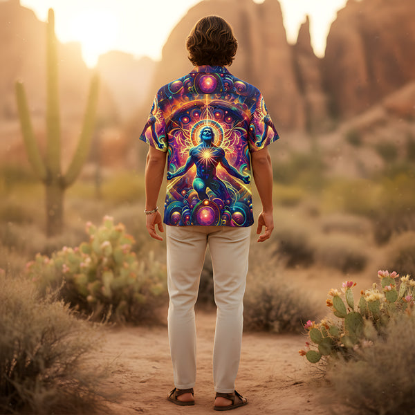 Adorn yourself with a garment from the "Cosmos Within" series and carry a piece of the universe with you. Each shirt acts as a canvas for contemplation and inspiration, illuminating the mind with a symphony of colors and shapes that resonate with the soul. Be captivated by the visual odyssey that celebrates the universal essence within each man and bridges the outer cosmos with inner potential.