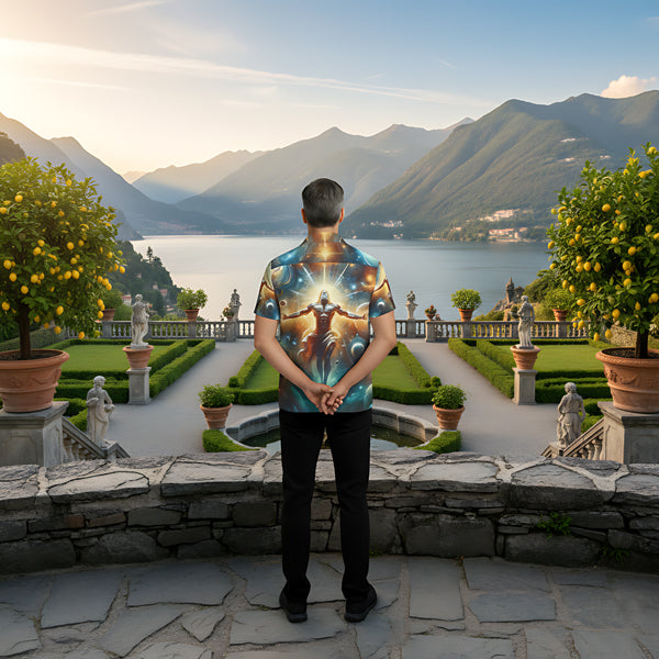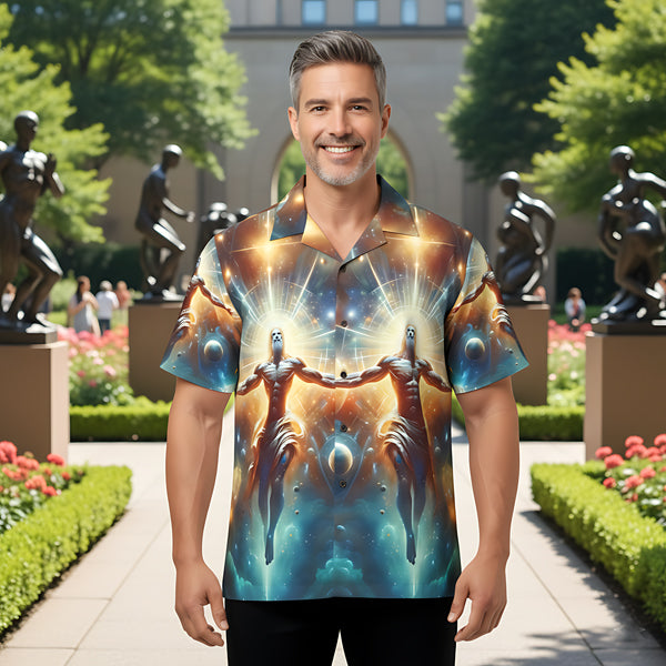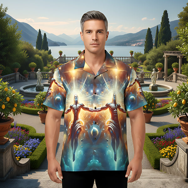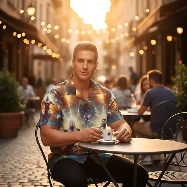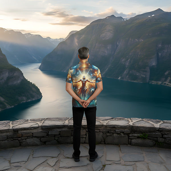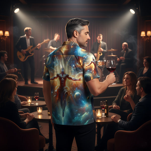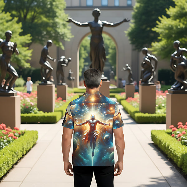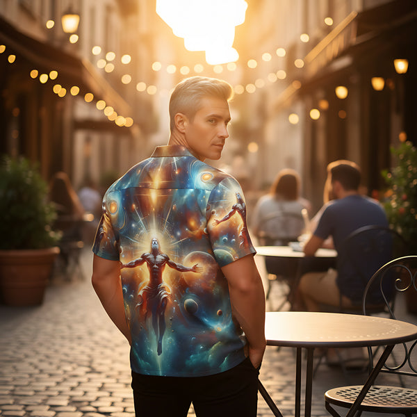 Adorn yourself with a garment from the "Cosmos Within" series and carry a piece of the universe with you. Each shirt acts as a canvas for contemplation and inspiration, illuminating the mind with a symphony of colors and shapes that resonate with the soul. Be captivated by the visual odyssey that celebrates the universal essence within each man and bridges the outer cosmos with inner potential.