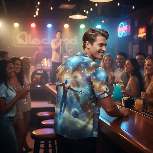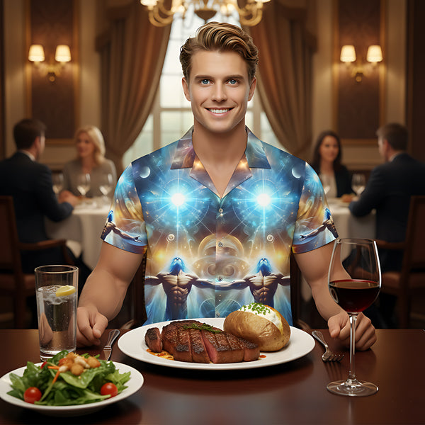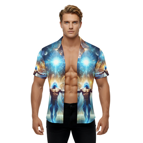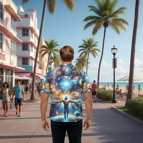 Adorn yourself with a garment from the "Cosmos Within" series and carry a piece of the universe with you. Each shirt acts as a canvas for contemplation and inspiration, illuminating the mind with a symphony of colors and shapes that resonate with the soul. Be captivated by the visual odyssey that celebrates the universal essence within each man and bridges the outer cosmos with inner potential.
