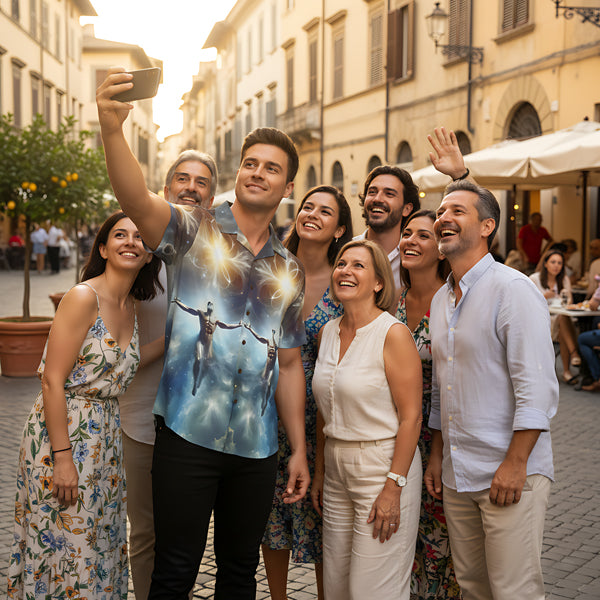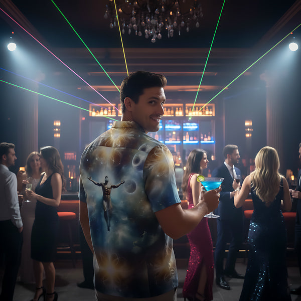 Adorn yourself with a garment from the "Cosmos Within" series and carry a piece of the universe with you. Each shirt acts as a canvas for contemplation and inspiration, illuminating the mind with a symphony of colors and shapes that resonate with the soul. Be captivated by the visual odyssey that celebrates the universal essence within each man and bridges the outer cosmos with inner potential.