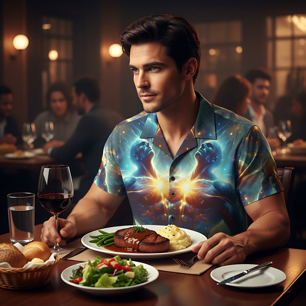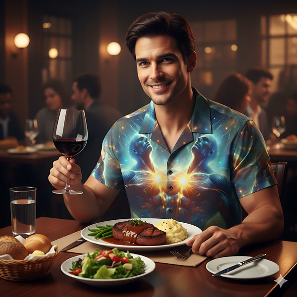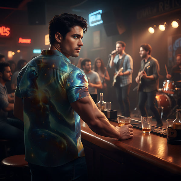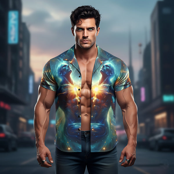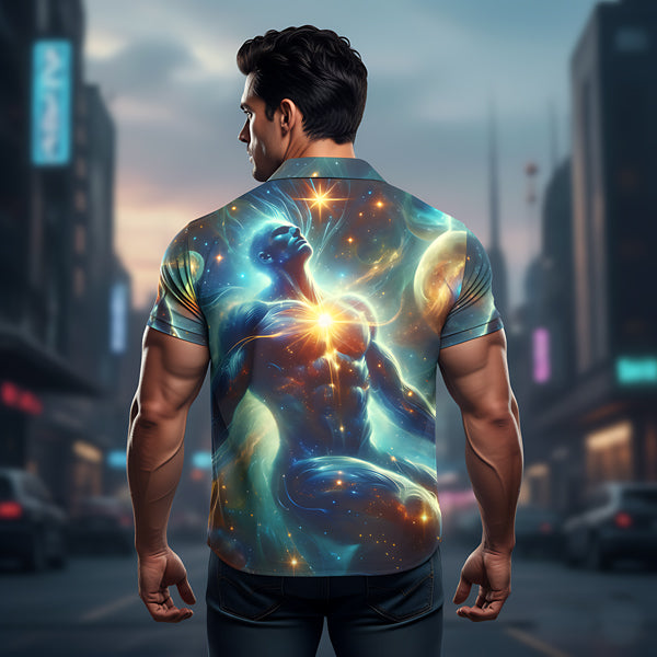 Adorn yourself with a garment from the "Cosmos Within" series and carry a piece of the universe with you. Each shirt acts as a canvas for contemplation and inspiration, illuminating the mind with a symphony of colors and shapes that resonate with the soul. Be captivated by the visual odyssey that celebrates the universal essence within each man and bridges the outer cosmos with inner potential.