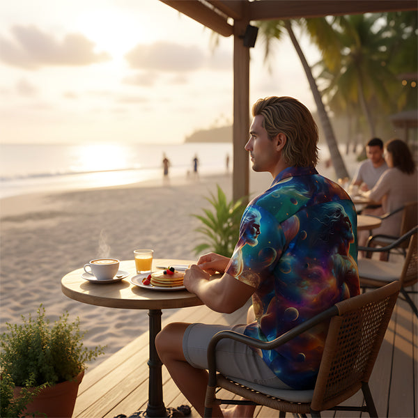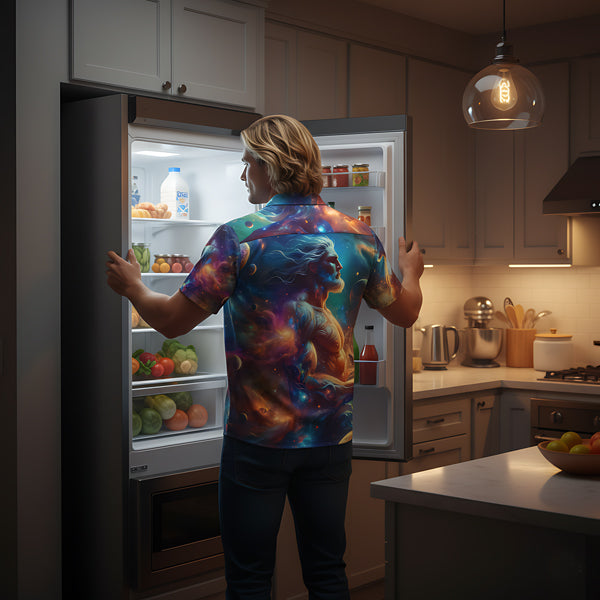 Adorn yourself with a garment from the "Cosmos Within" series and carry a piece of the universe with you. Each shirt acts as a canvas for contemplation and inspiration, illuminating the mind with a symphony of colors and shapes that resonate with the soul. Be captivated by the visual odyssey that celebrates the universal essence within each man and bridges the outer cosmos with inner potential.