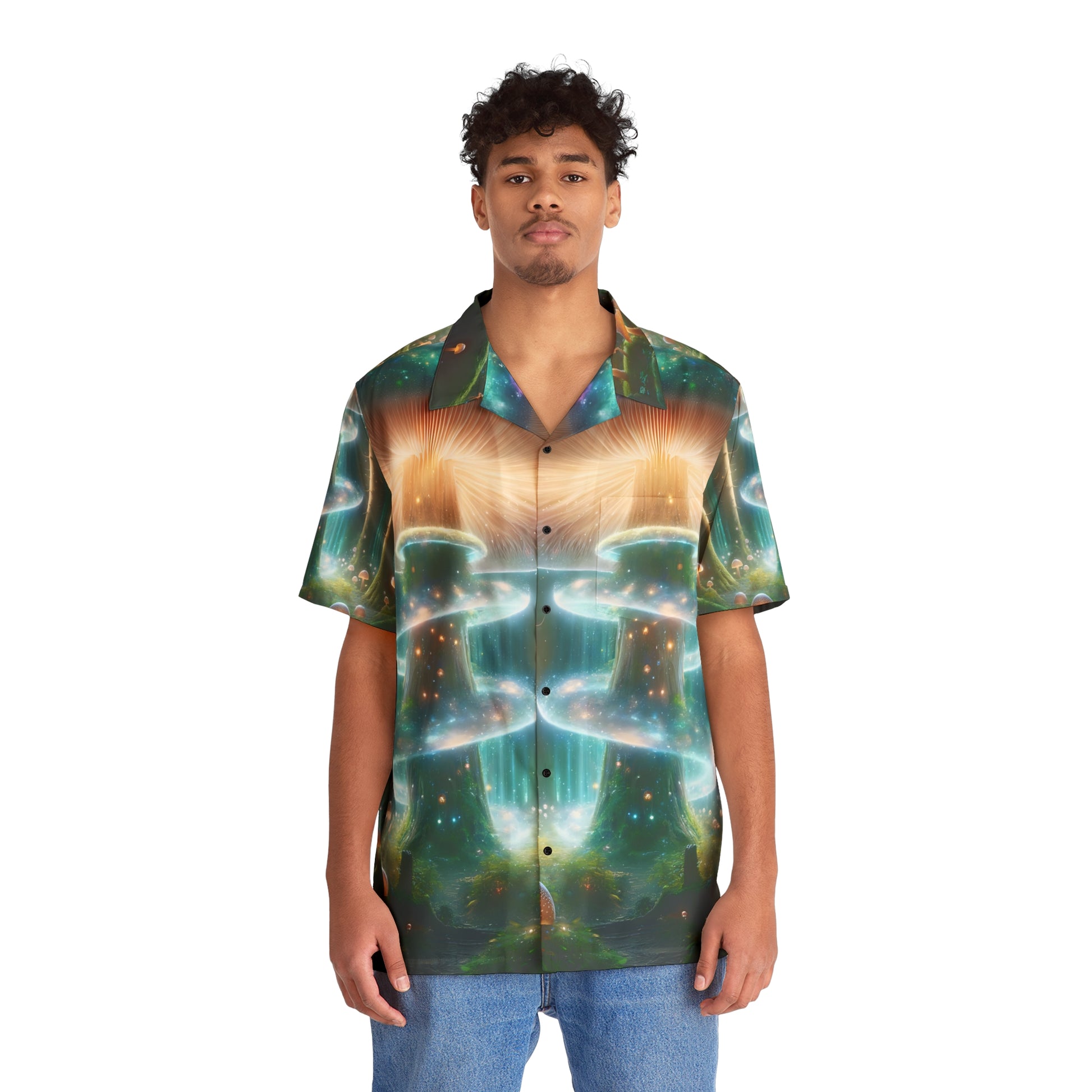 As you traverse the day-to-day or the night-to-night, let these 'Galactic Mushrooms' be your companions, reminding you of the boundless creativity within and the endless possibilities that lie in the unexplored corners of the universe. This is more than fashion—it's an adventure, a piece of the celestial journey, ready to be worn and explored.