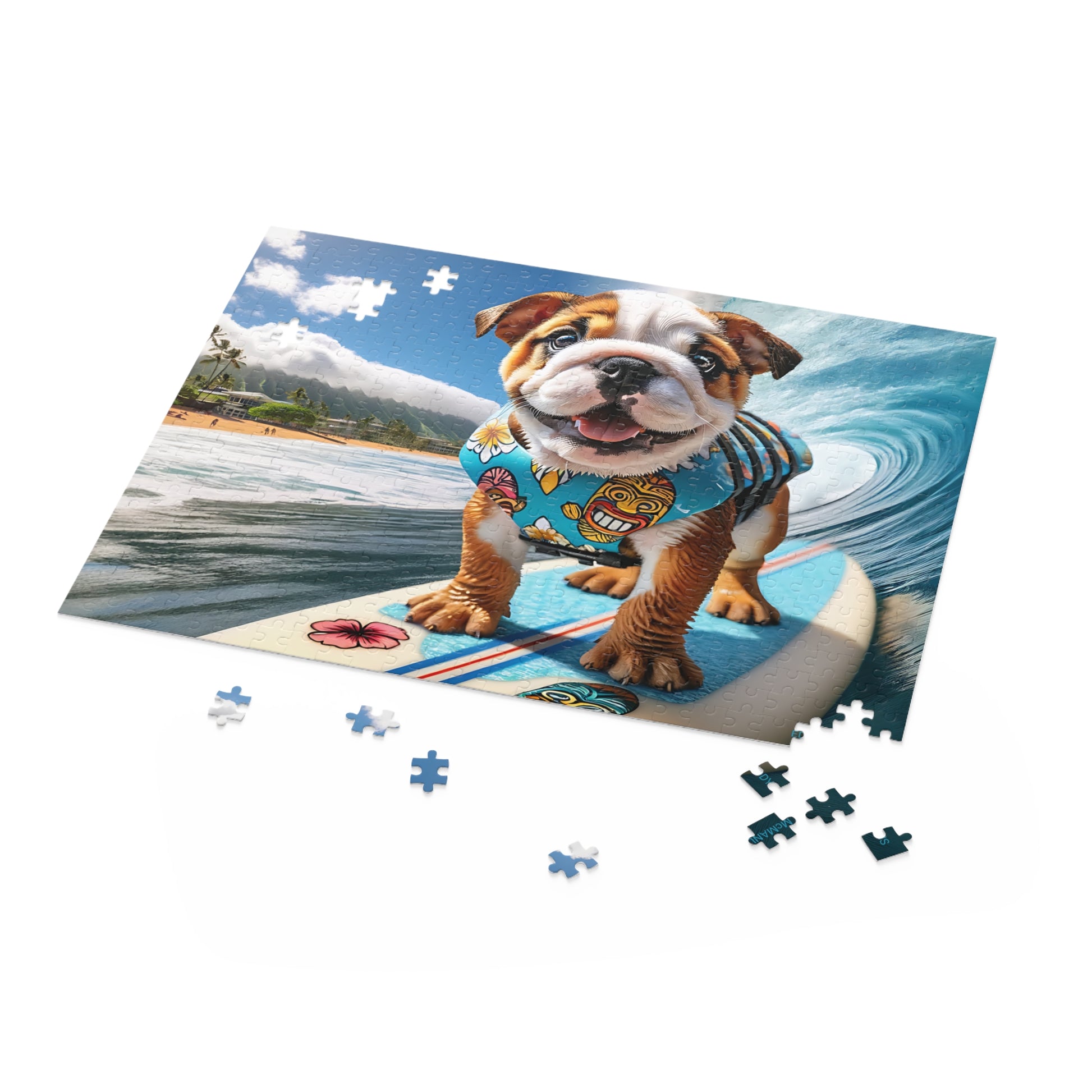 Surf Pups! Surfing English Bulldog Puppy Puzzle 11 - (120, 252, 500-Piece)