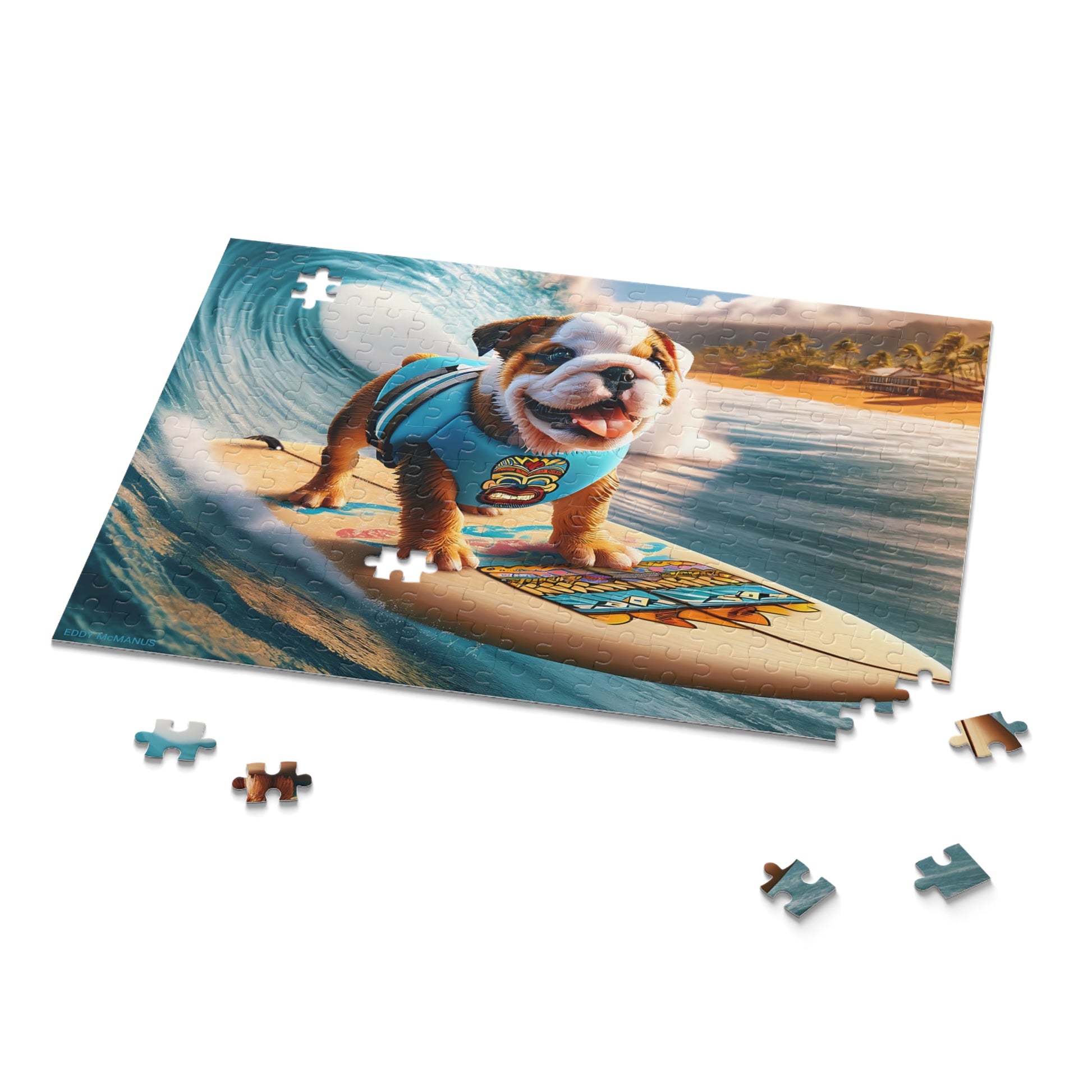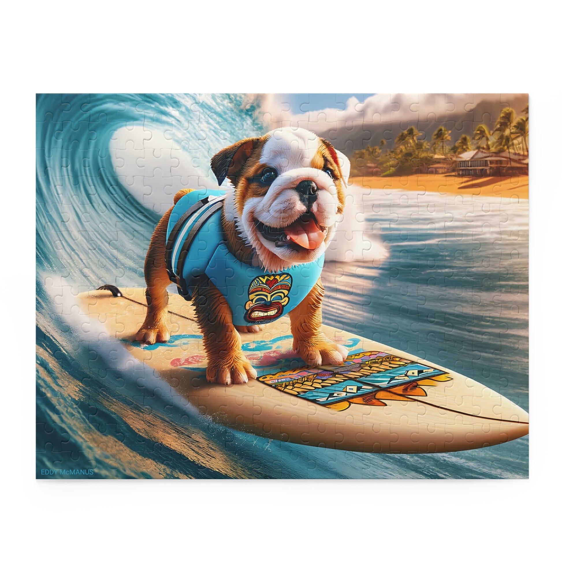 Surf Pups! Surfing English Bulldog Puppy Puzzle 12 - (120, 252, 500-Piece)