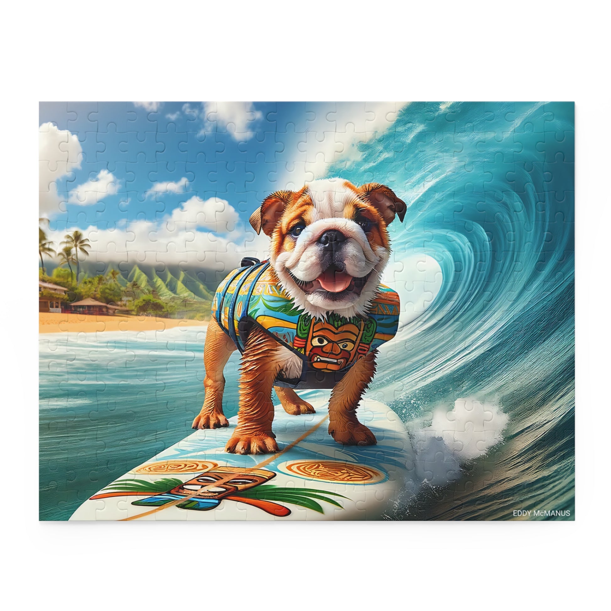Surf Pups! Surfing English Bulldog Puppy Puzzle 2 - (120, 252, 500-Piece)