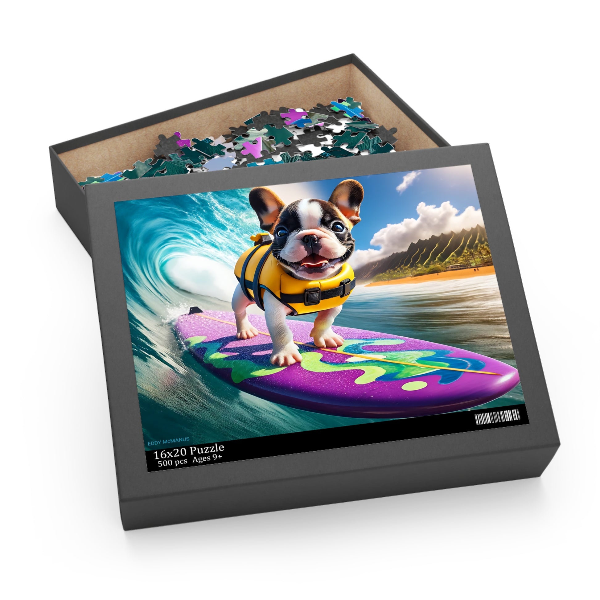 Surf Pups! Surfing French Bulldog Puppy Puzzle 9 - (120, 252, 500-Piece)