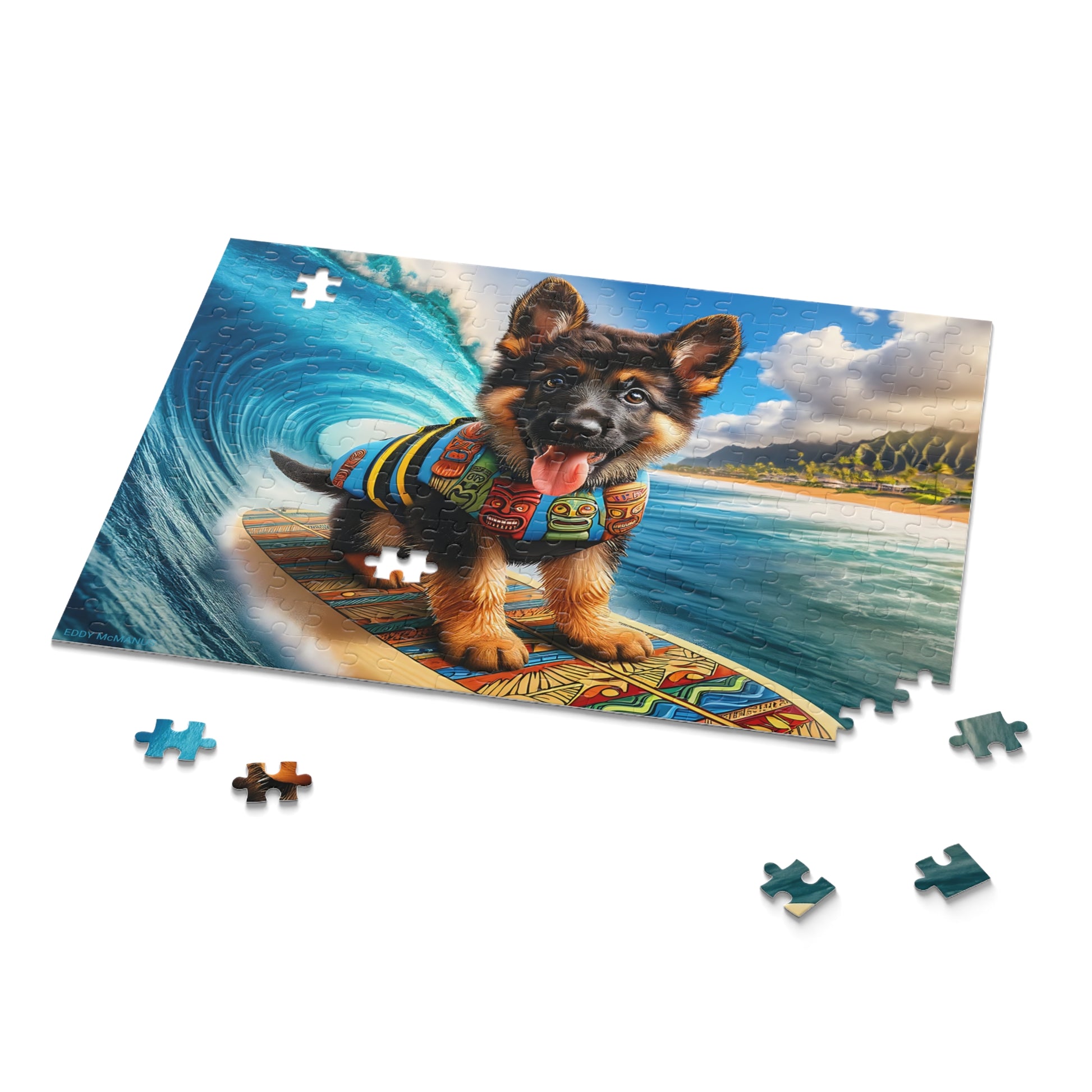 Surf Pups! Surfing German Shepherd Puppy Puzzle 1 - (120, 252, 500-Piece)