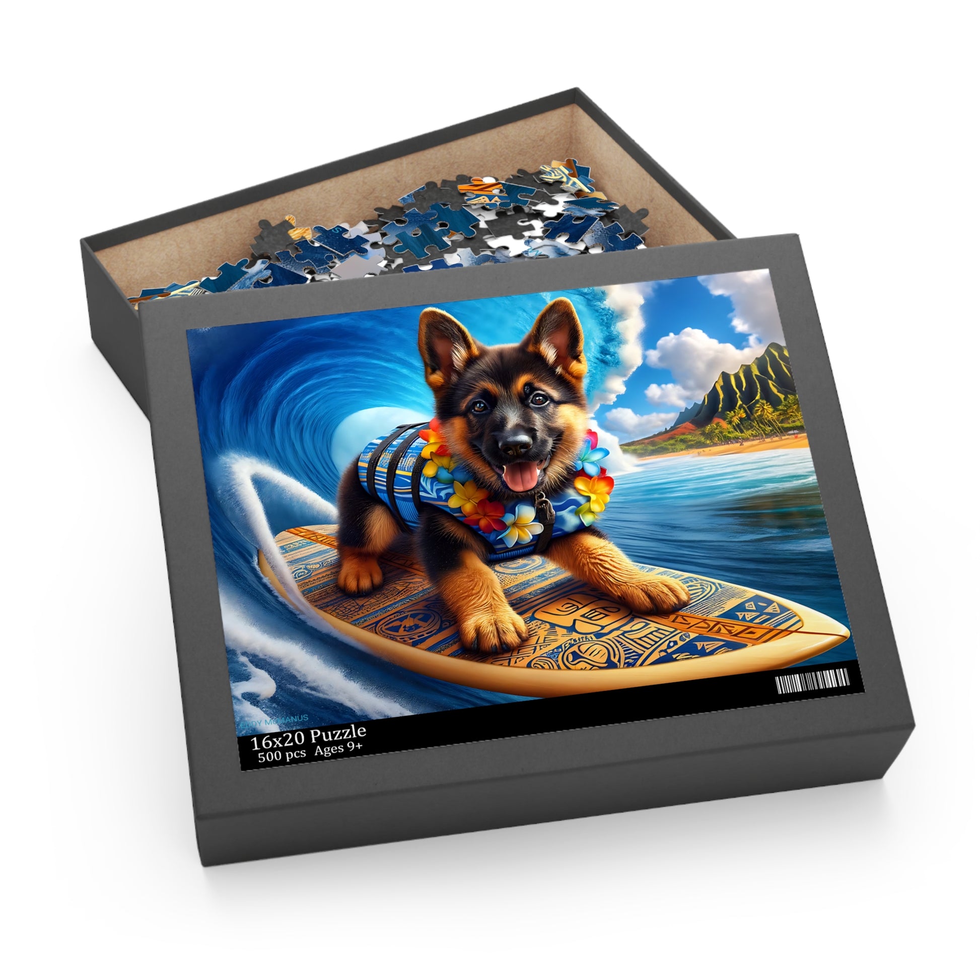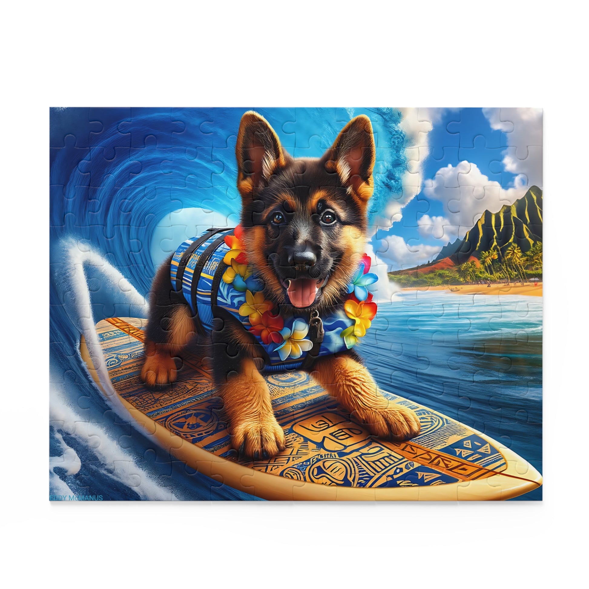 Surf Pups! Surfing German Shepherd Puppy Puzzle 10 - (120, 252, 500-Piece)