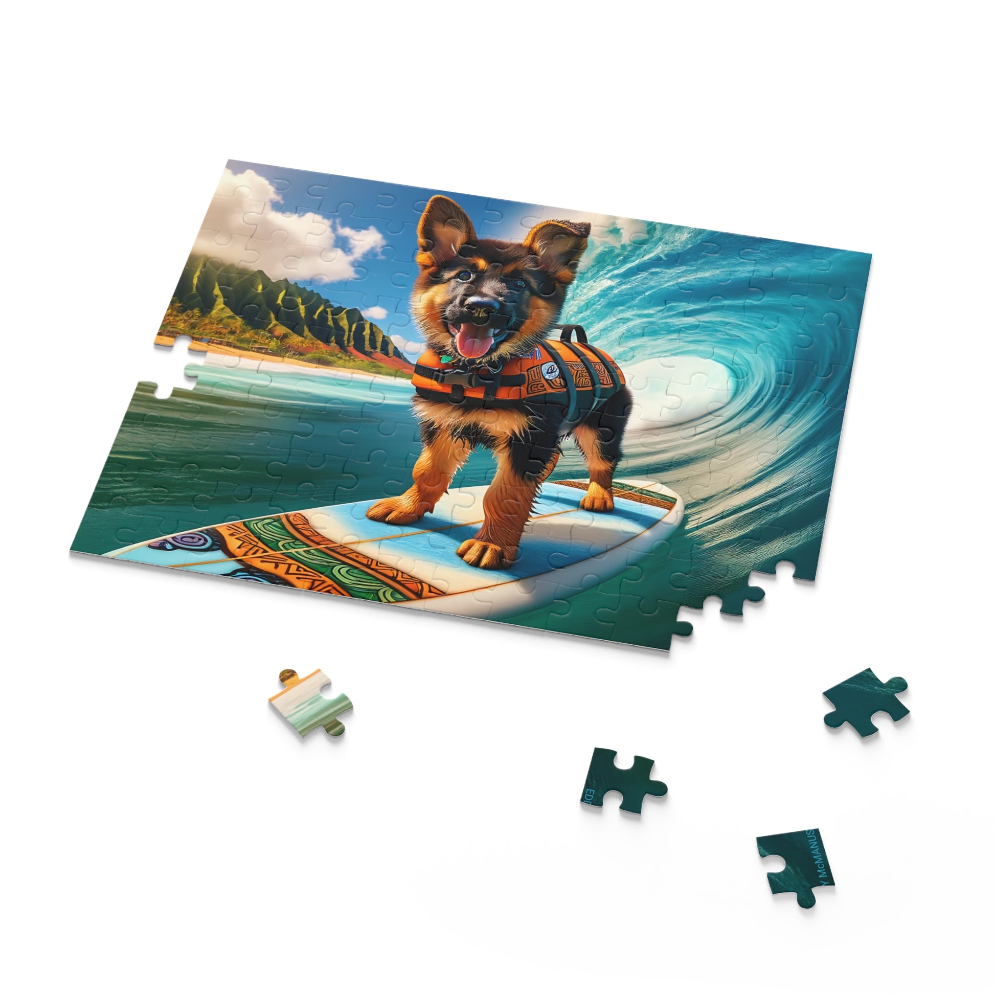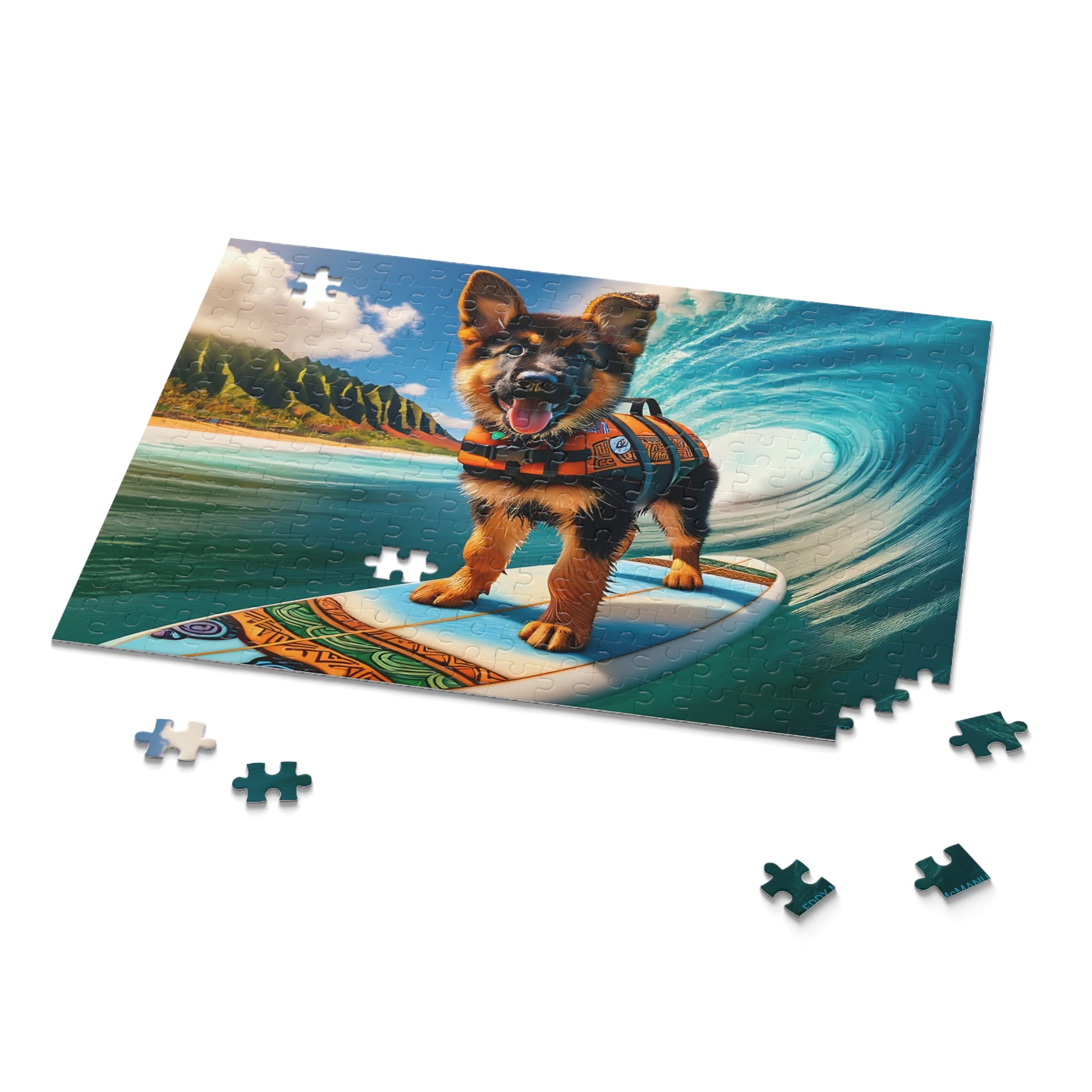 Surf Pups! Surfing German Shepherd Puppy Puzzle 7 - (120, 252, 500-Piece)