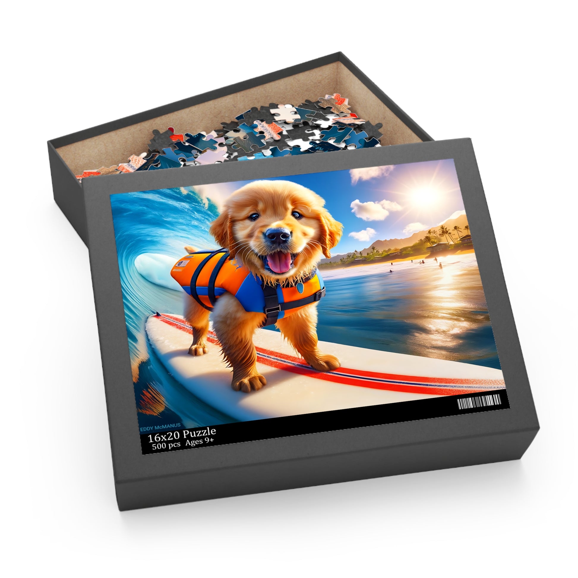 Surf Pups! Surfing Golden Retriever Puppy Puzzle 7 - (120, 252, 500-Piece)