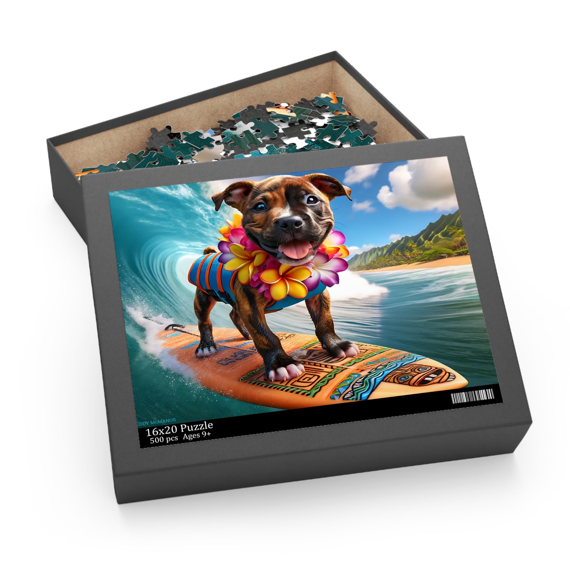 Surf Pups! Surfing Pit Bull Puppy Puzzle 10 - (120, 252, 500-Piece)